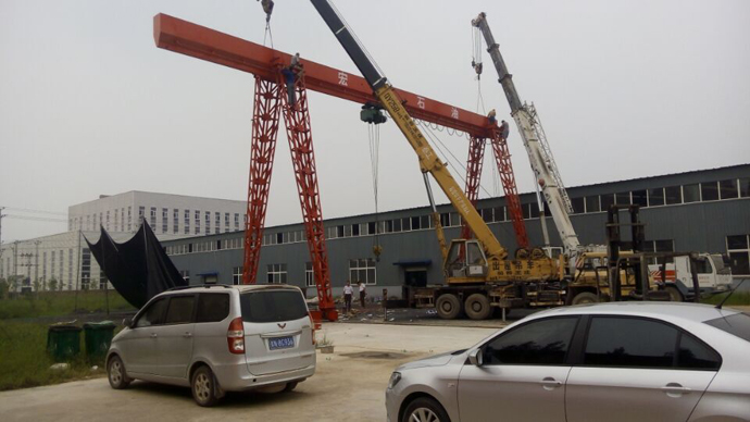 公司領(lǐng)導(dǎo)班子克服困難,科學(xué)籌劃、精心安排,優(yōu)化吊裝方案,按照施工現(xiàn)場(chǎng)的管理要求,進(jìn)行特種設(shè)備的報(bào)檢工作,施工方案的編、審、批和升版工作;在作業(yè)之前進(jìn)行全面技術(shù)、安全交底工作,充分辨識(shí)作業(yè)過程中的危險(xiǎn)點(diǎn)。安裝方案采取200噸汽車吊兩輛吊裝橋架進(jìn)行就位安裝工作,在所有參與作業(yè)人員的努力下,安裝過程安全、順利,圓滿完成了20噸門吊的安裝,為后續(xù)料場(chǎng)調(diào)運(yùn)原材料奠定了堅(jiān)實(shí)的基礎(chǔ)。