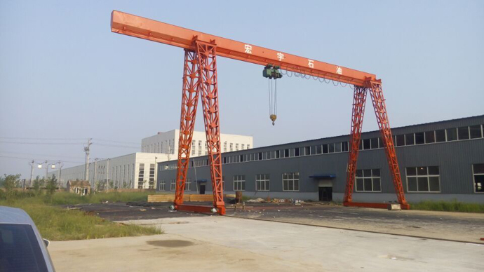 14日日,滄州宏宇石油機(jī)械有限責(zé)任公司生產(chǎn)原材料場(chǎng)地首臺(tái)20噸龍門吊橋架吊裝就位,整個(gè)吊裝過程安全可控。