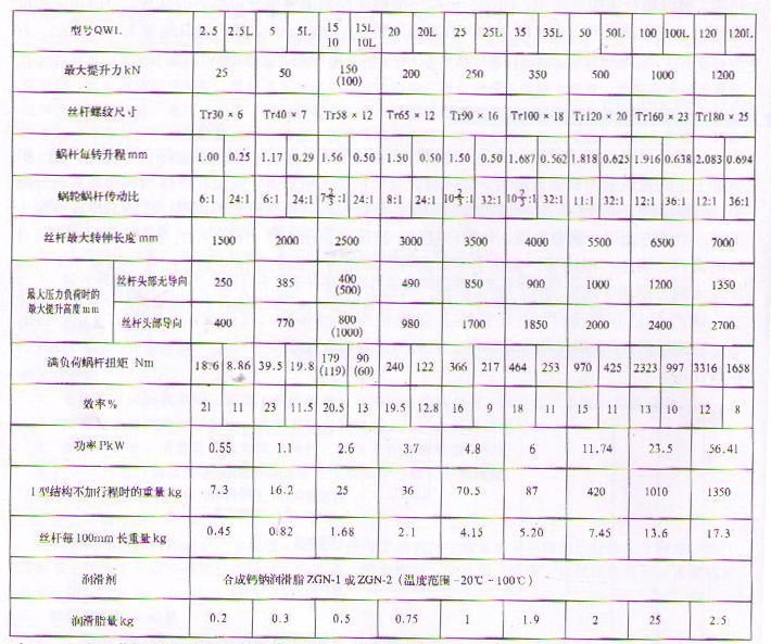 QWL蝸輪絲桿升降機(jī)是一種基礎(chǔ)起重部件,符合JB/T8809—1998(原JB/ZQ4391—86)標(biāo)準(zhǔn)。該產(chǎn)品可廣泛用于機(jī)械、冶金、建筑、化工、醫(yī)療、文化衛(wèi)生等各個(gè)行業(yè)。承載能力2.5—120T。具有結(jié)構(gòu)緊湊、體積小、重量輕、動(dòng)力源廣泛、噪音小、安裝方便、使用靈活、功能多、配套形式多、可靠性高、使用壽命長等優(yōu)點(diǎn)。具有提升、降落、推進(jìn)、翻轉(zhuǎn)等功能,可以單臺(tái)或組合使用。QWL絲桿升降機(jī)能按一定程序準(zhǔn)確地控制調(diào)整提升或推進(jìn)的高度,可以用電動(dòng)機(jī)或其它動(dòng)力直接帶動(dòng),也可以手動(dòng)。最高輸入轉(zhuǎn)速1500r/min,最大提升速度2.7m/min。有不同的結(jié)構(gòu)型式和裝配方式,提升高度按用戶的要求制造。該裝置可以自鎖。