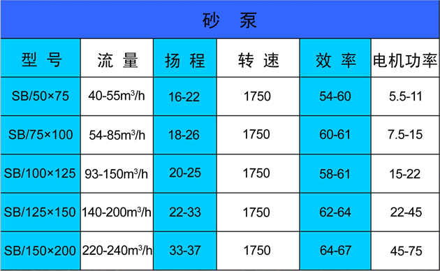 砂泵是石油鉆井泥漿固控設備中的重要設備之一,主要用于除砂器,除泥器,混合漏斗的配套,該泵具有設備精良,也是理想的泥漿的灌注泵,主要特點是零件的通用性和互換性強,軸封泄露少,工作可靠,使用壽命長,維護方便。 主要技術參數: